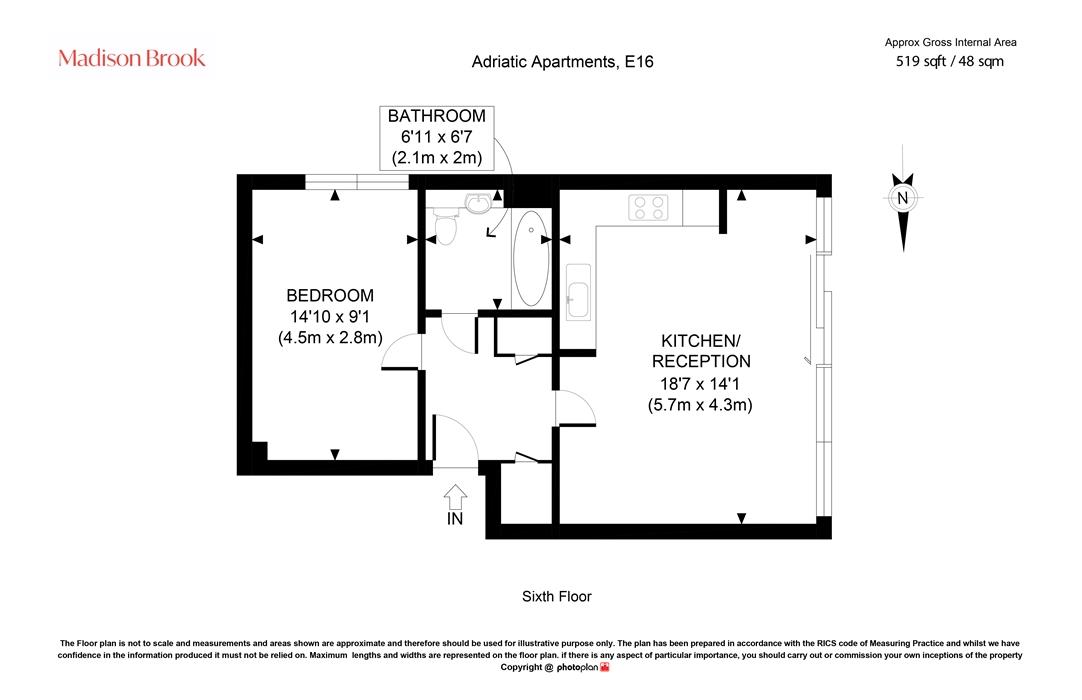A well-presented one-bedroom apartment set on the sixth floor of the sought-after Adriatic Apartments, ideally located within Royal Victoria Dock, E16. This bright and contemporary home offers approximately 519 sq ft of internal living space, featuring a spacious open-plan kitchen and reception area, perfect for both relaxing and entertaining. The living space leads onto a charming south-facing Juliet balcony, providing pleasant views over the dock and allowing for excellent natural light throughout the day.