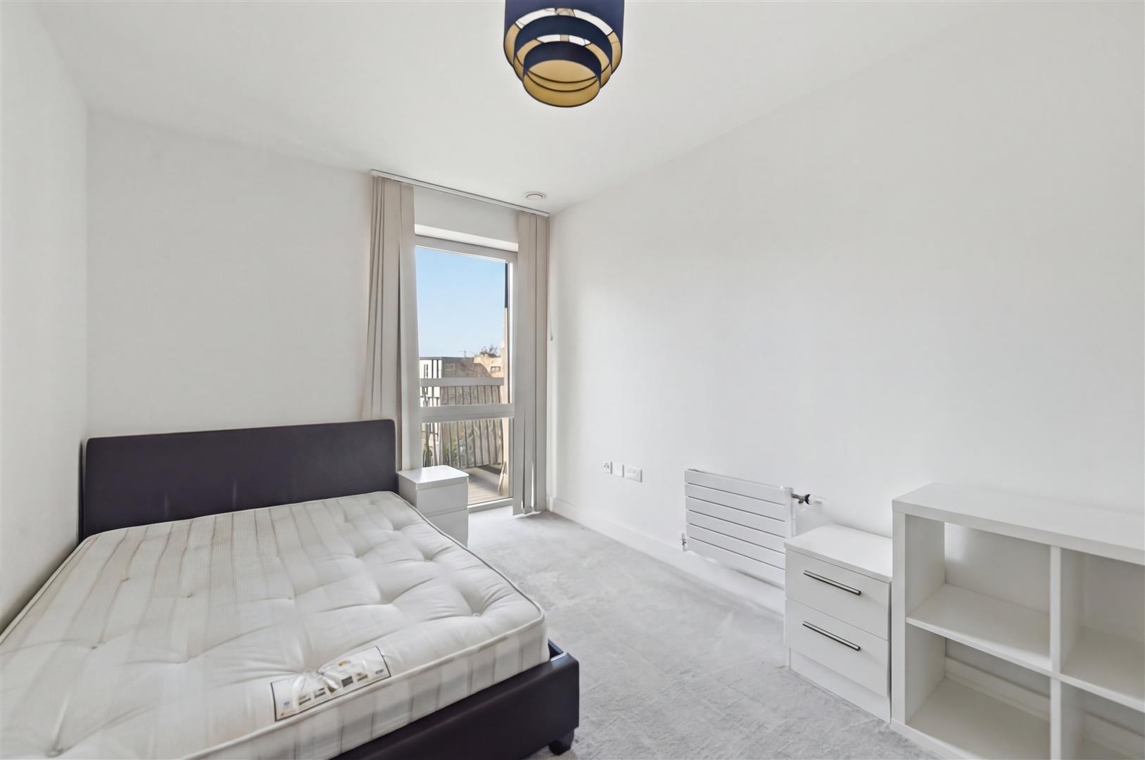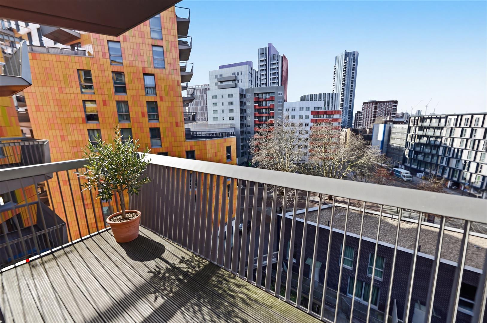 The property features a bright and spacious open-plan kitchen, dining and reception room. The kitchen is fitted with integrated appliances, while large windows allow for excellent natural light. The apartment further comprises a generous double bedroom and a modern bathroom suite, complemented by useful storage within the hallway. A private balcony extends the living space outdoors.
