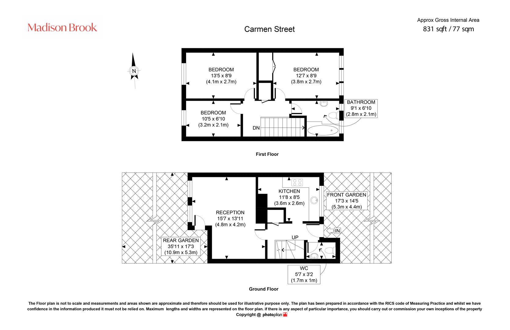 Extending to approximately 831 sq.ft., the property is arranged over two floors and provides well-balanced accommodation throughout. The ground floor features a spacious reception room with direct access to the rear garden, a separate modern kitchen, and a convenient guest WC. Upstairs, the property offers three well-proportioned bedrooms along with a modern family bathroom. The bedrooms provide flexible accommodation for families, guests or those working from home.