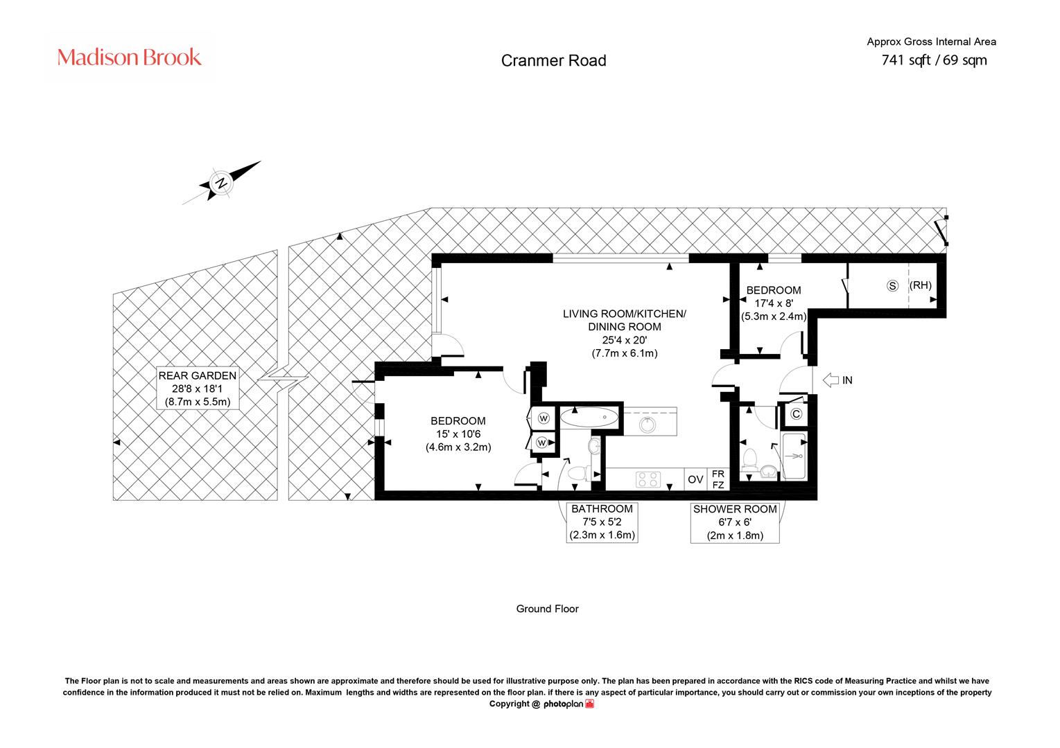 The property features a spacious open-plan living, kitchen and dining area, finished to a modern standard and providing an excellent space, with direct access out to the garden. The kitchen is well-appointed with contemporary fittings and integrated appliances. There are two generously sized bedrooms, alongside a stylish family bathroom and an additional shower room, offering both comfort and practicality.