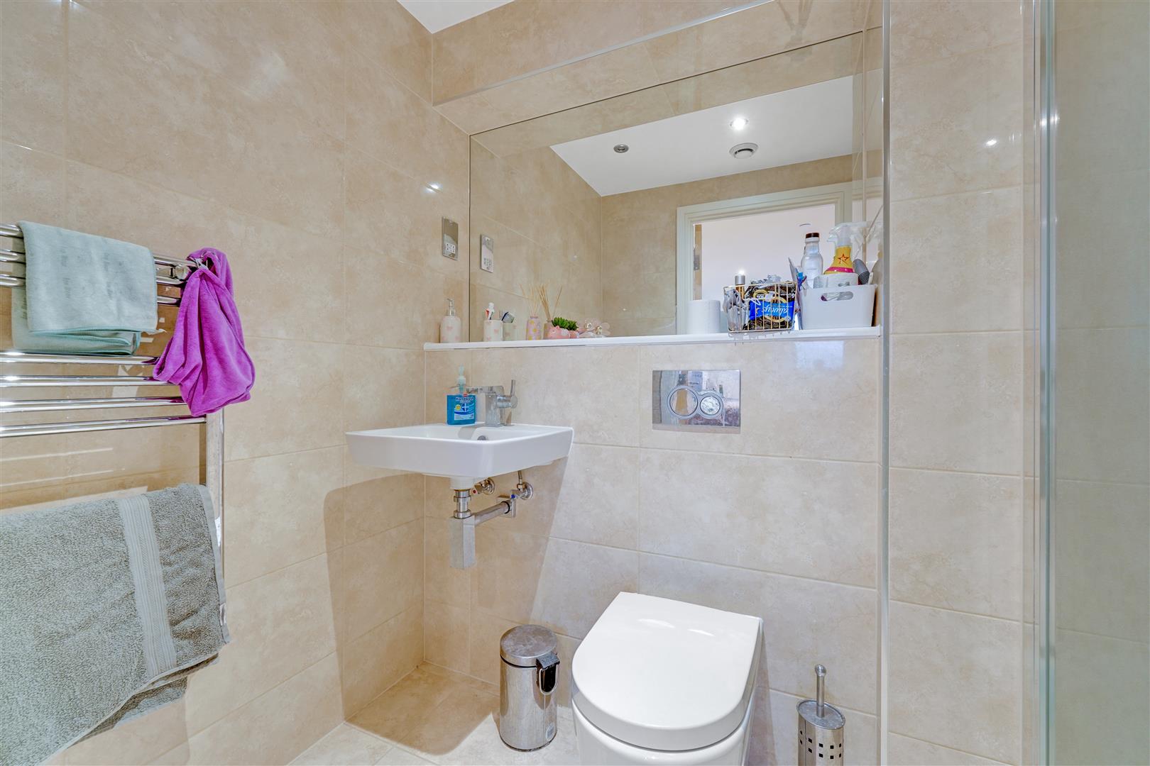 The principal bedroom is generously proportioned and benefits from a modern en-suite shower room, while the second double bedroom is equally well sized and served by a stylish family bathroom. Additional storage cupboards are positioned off the hallway, enhancing practicality.