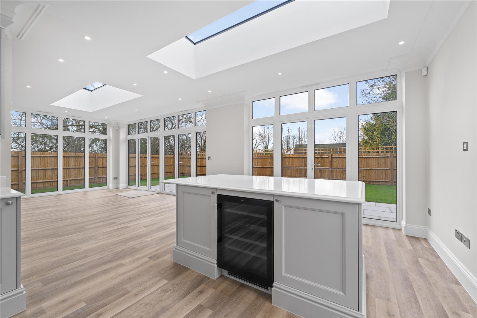- Vast open-plan kitchen/dining/family room with wrap-around windows
