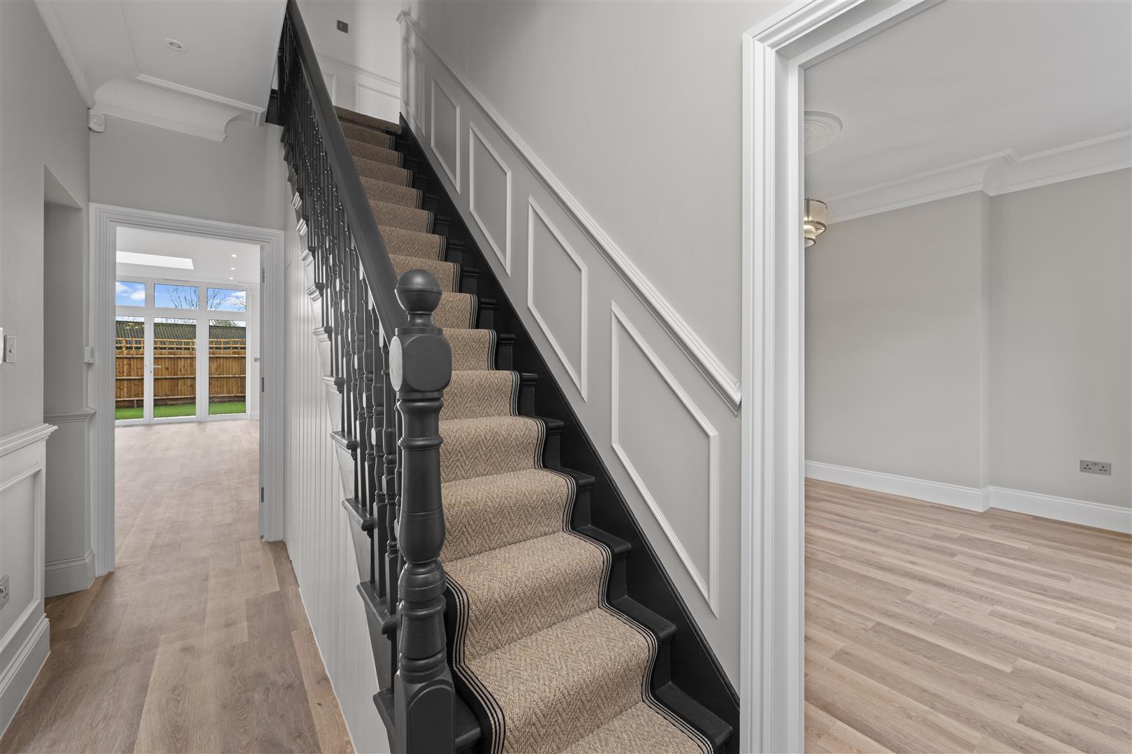 The ground floor offers outstanding living space, including two generous reception rooms, a snug, WC and a vast open-plan kitchen, dining and family room. This stunning space is flooded with natural light via wrap-around windows and French doors, creating a seamless connection to the outside and offering breathtaking views towards Bushy Park. A utility room and excellent storage further enhance practicality. Upstairs, the property provides five well-proportioned bedrooms arranged over two floors, served by three beautifully appointed bathrooms.