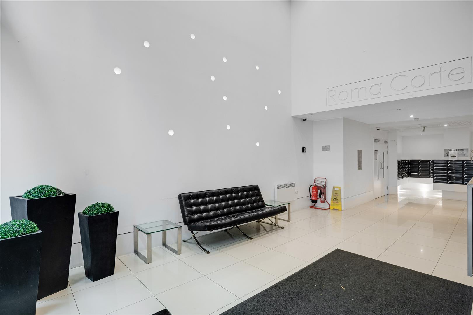 Roma Corte further benefits from a 24-hour concierge service, ensuring convenience and peace of mind. Residents also enjoy access to a communal terrace, perfect for socialising or unwinding outdoors. With no onward chain, the property is ready for immediate occupation.