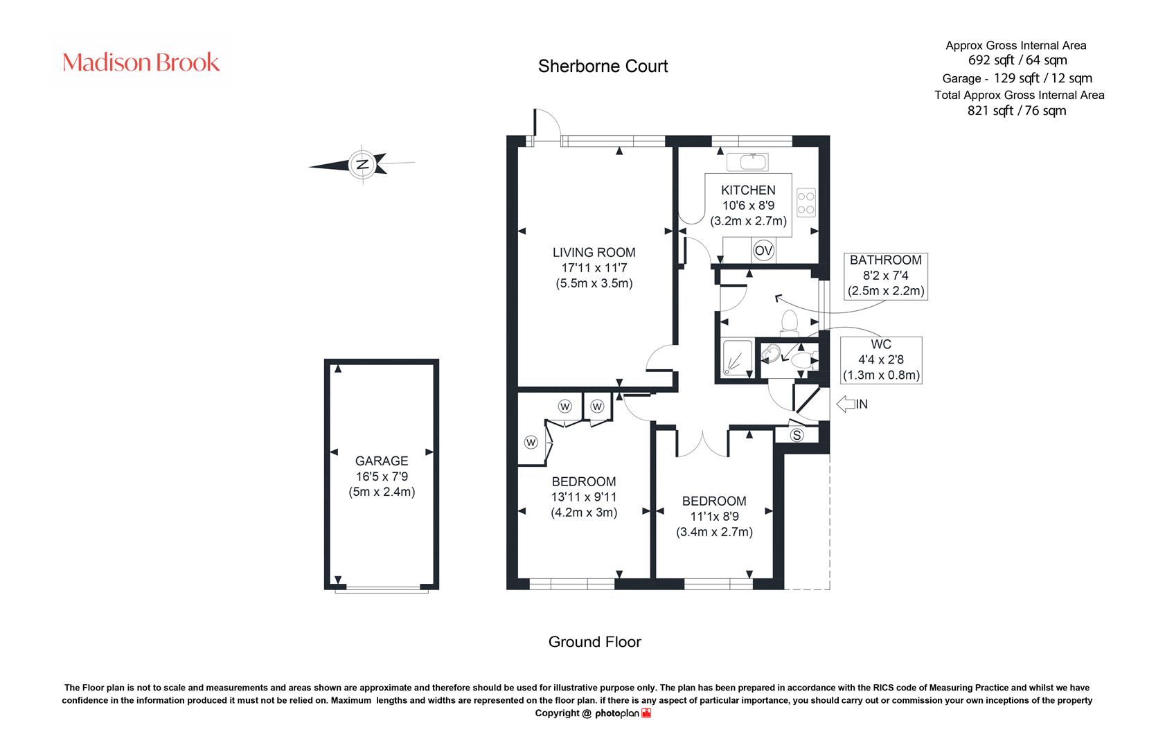 The accommodation comprises a generous living room with views across the communal gardens, providing a bright and comfortable space. The separate kitchen is well proportioned and functional, offering scope for cosmetic improvement while remaining in good working order. There are two well-sized bedrooms, both benefiting from good natural light and storage potential. The property also features a bathroom and a separate WC, adding convenience for everyday living. Overall, the flat is well maintained but would benefit from modernisation. Externally, residents enjoy access to well-kept communal grounds, while the inclusion of a private garage is a notable advantage for parking or additional storage.