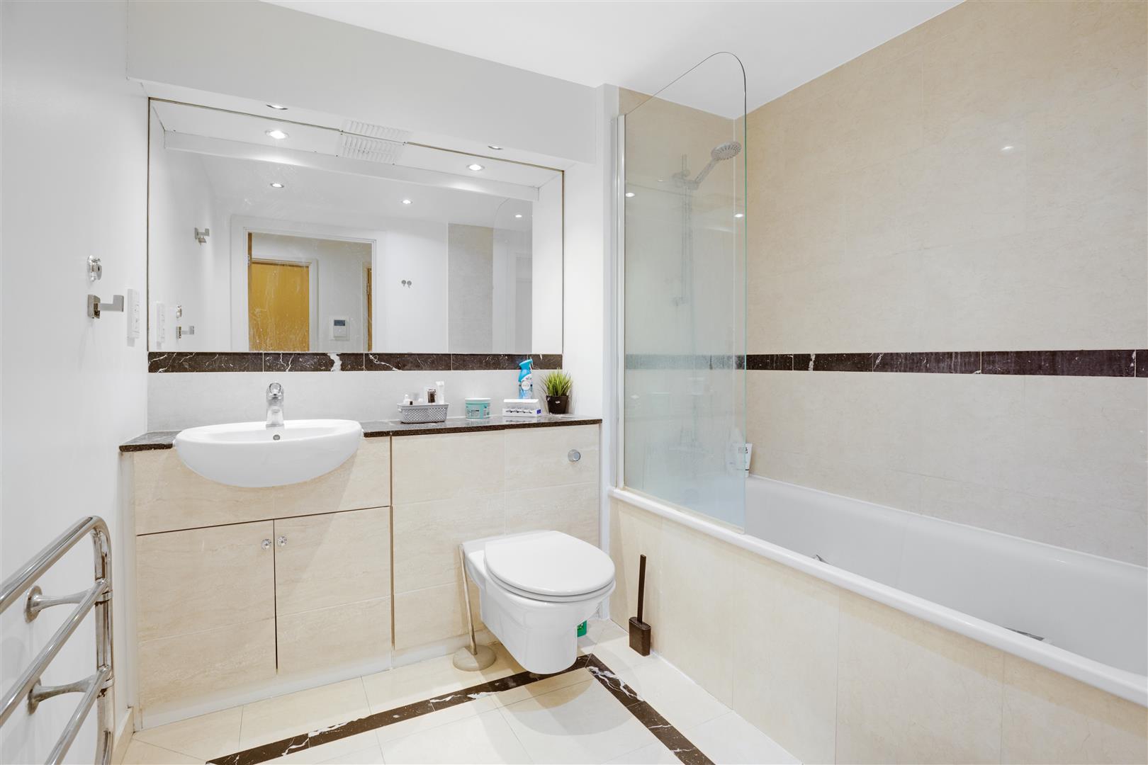 Set on the first floor and offered chain-free, the apartment has been recently redecorated and delivers a bright, modern living environment with high ceilings, clean finishes, and a spacious layout measuring approximately 50 sqm (543 sqft). The property features a generous open-plan reception/kitchen/dining space with newly laid flooring and excellent natural light. The kitchen is well appointed with integrated appliances and ample cabinetry, while the living area opens directly onto a private balcony overlooking the peaceful internal courtyard. The bedroom is spacious and well-lit, complete with built-in storage and contemporary styling. A tiled three-piece bathroom and an additional hallway cupboard provide both practicality and comfort.